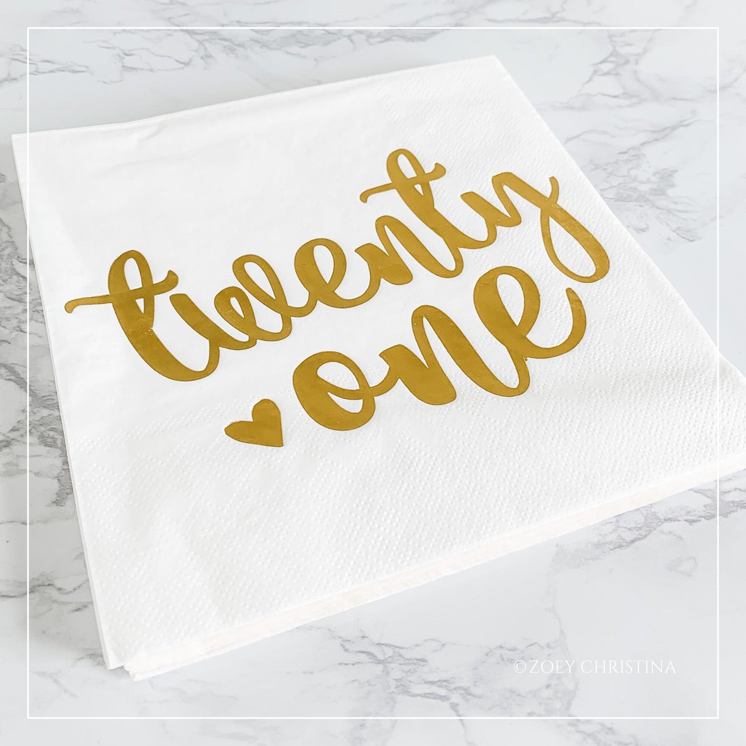 21st Birthday Napkins – White with Gold Foil “Twenty One” | 20-Pack