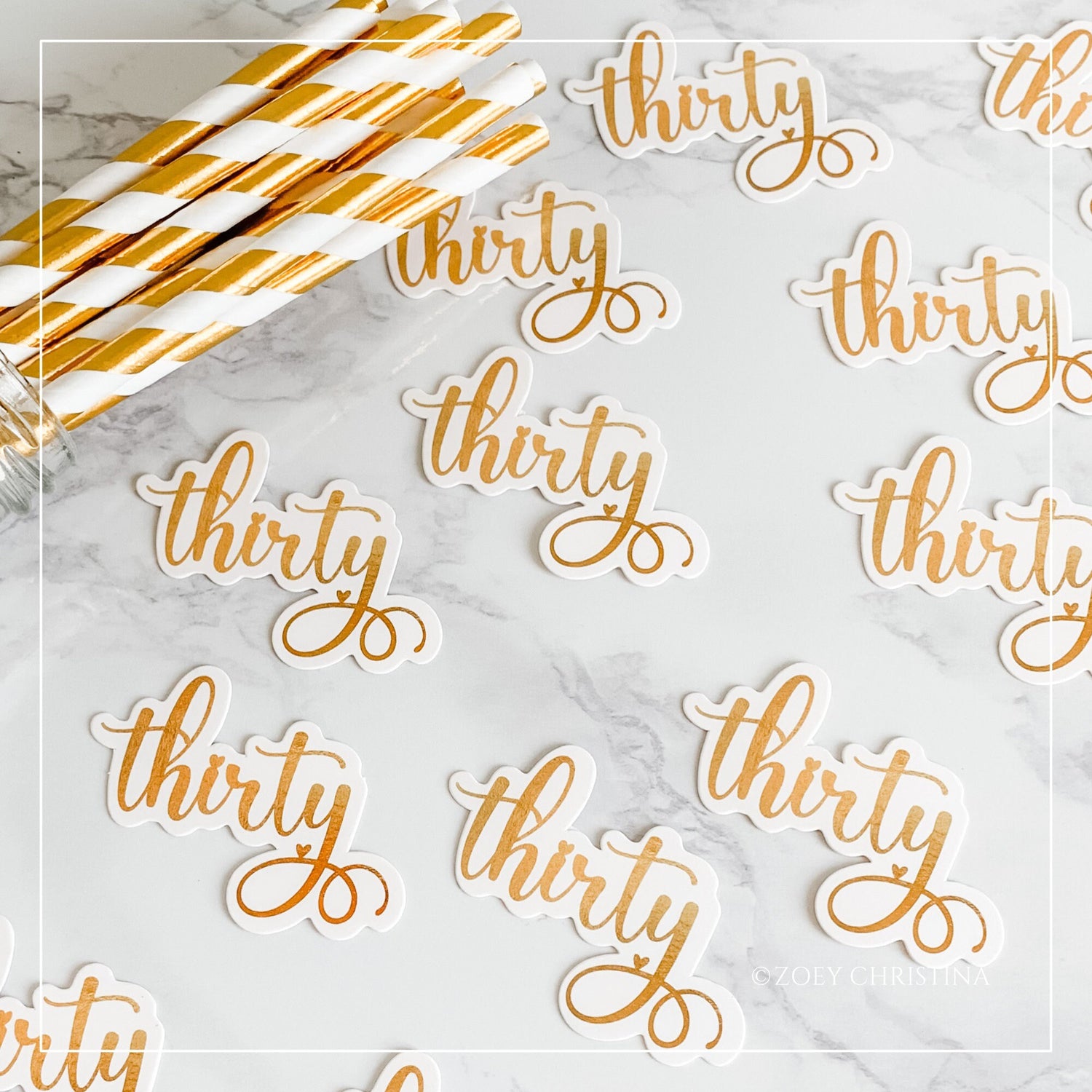 ✅ 12 x "Thirty" Cutouts (Gold or Rose Gold)