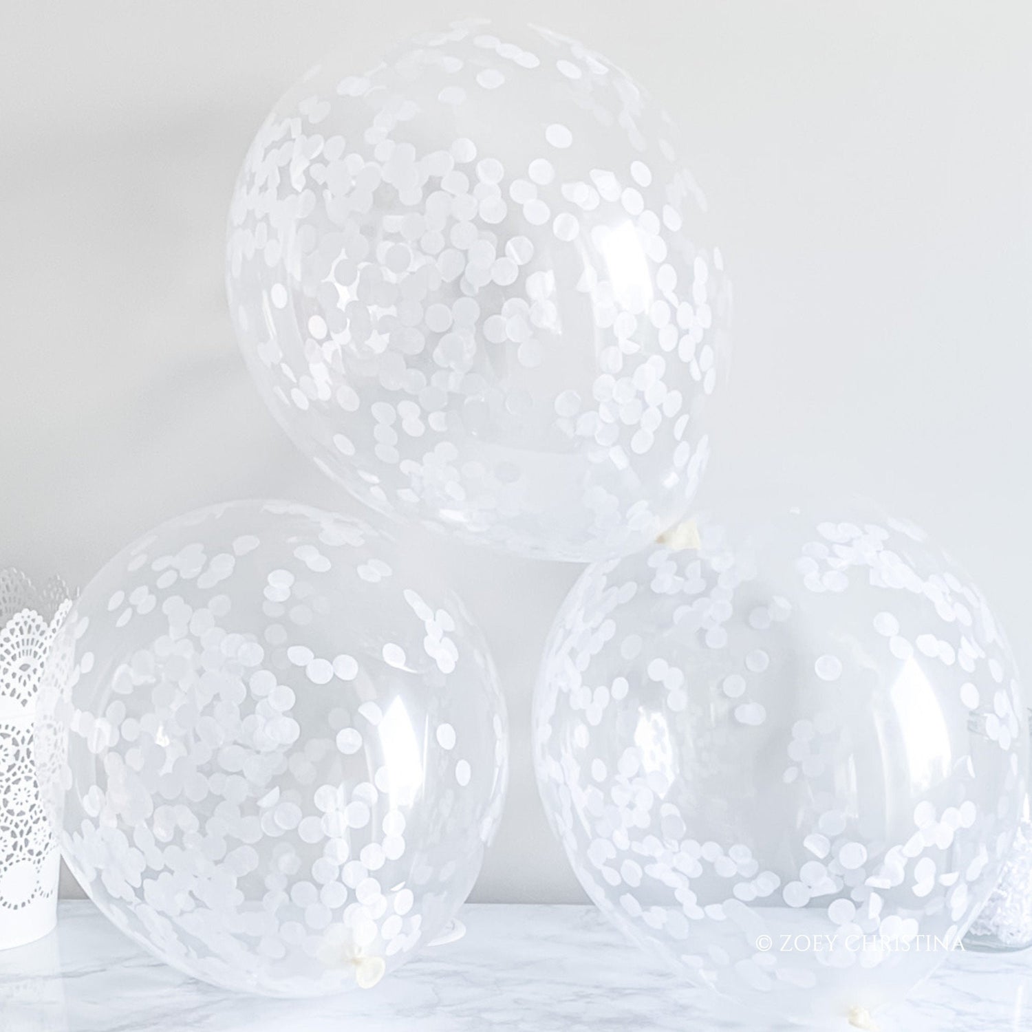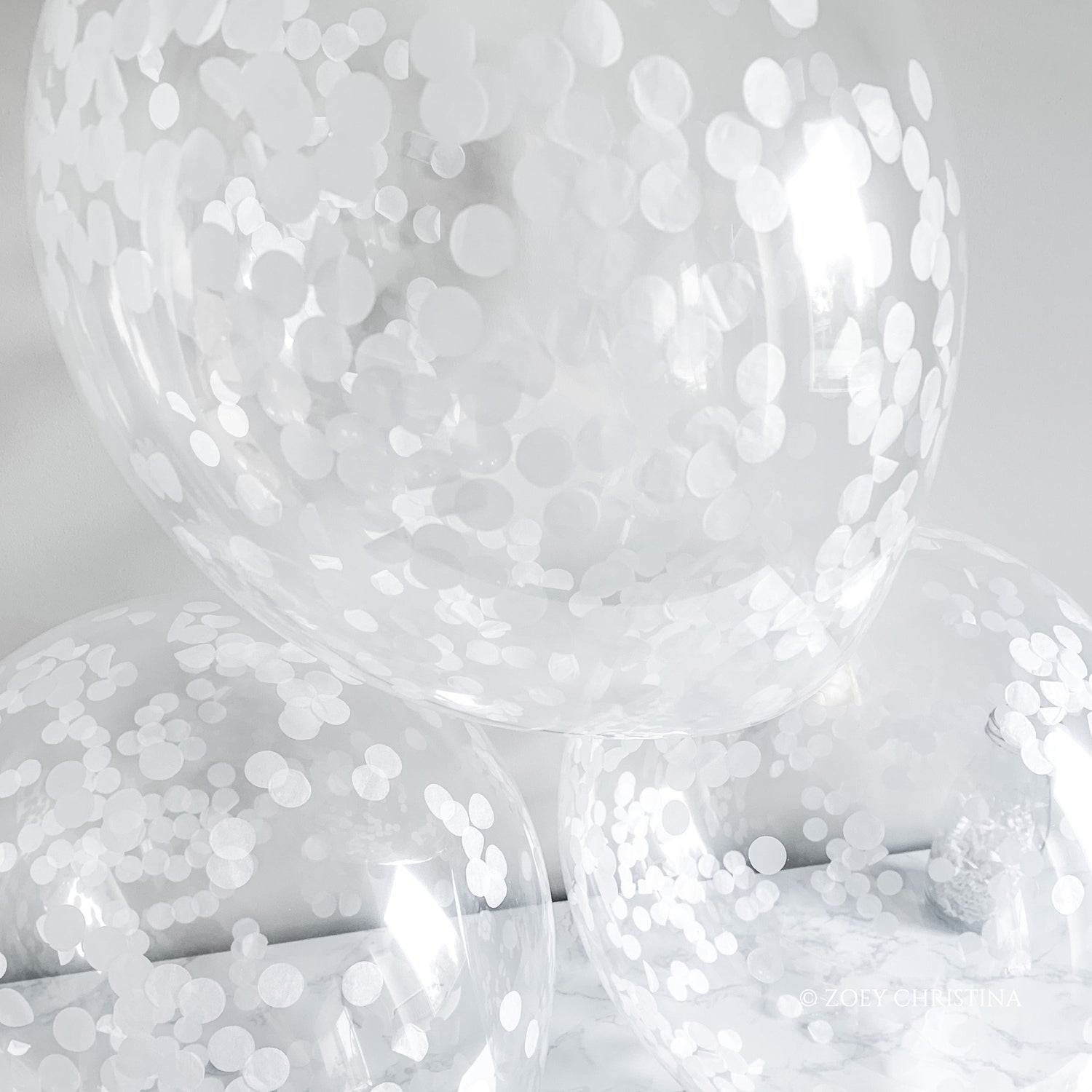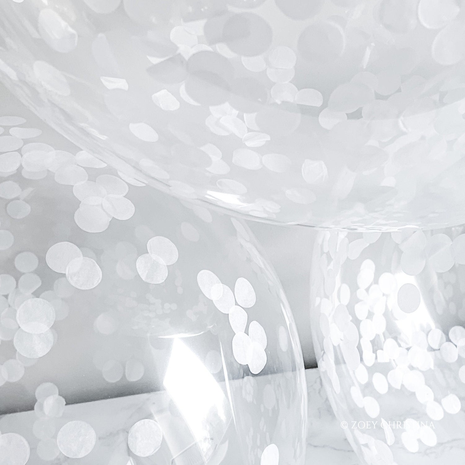 📌 Please Note: This listing is for the clear white confetti-filled balloons only. Additional decorations, tableware, or party supplies shown in images are sold separately.