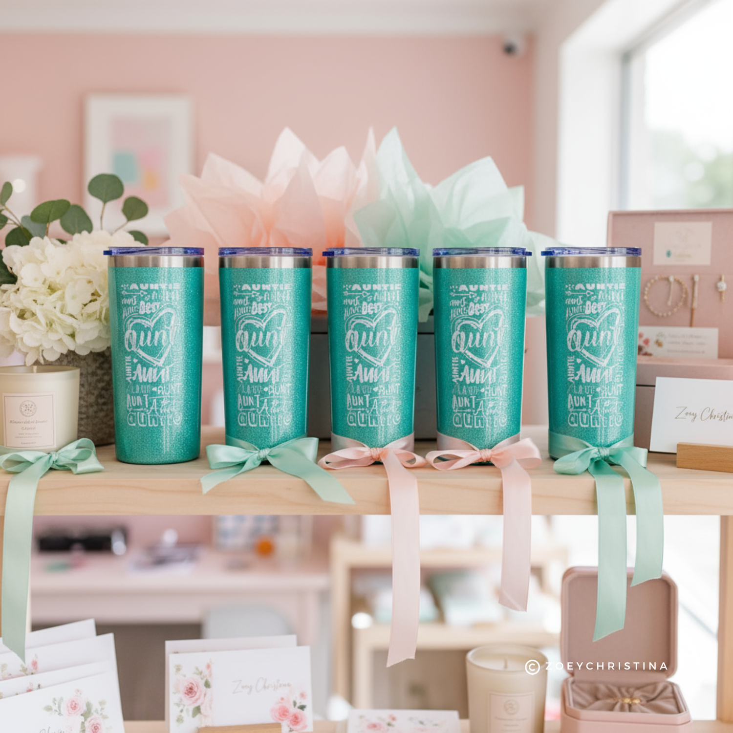 Auntie Travel Tumbler: Iridescent Mint Stainless Steel, 16oz