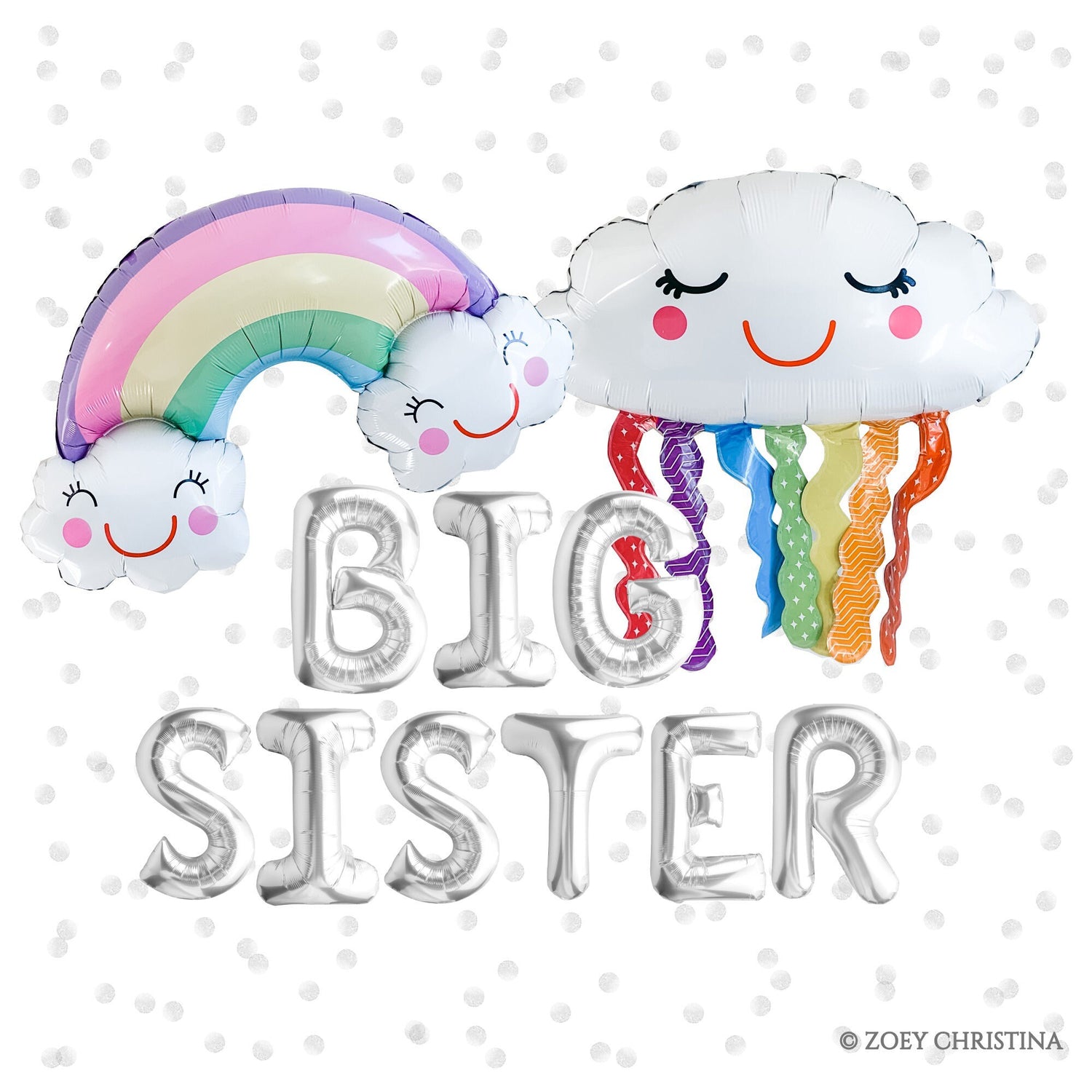 📌 Please Note: This listing is for the "BIG SISTER" foil letter balloons only. Additional decorations, props, or accessories shown in images (such as backdrops, tableware, or plush toys) are sold separately.