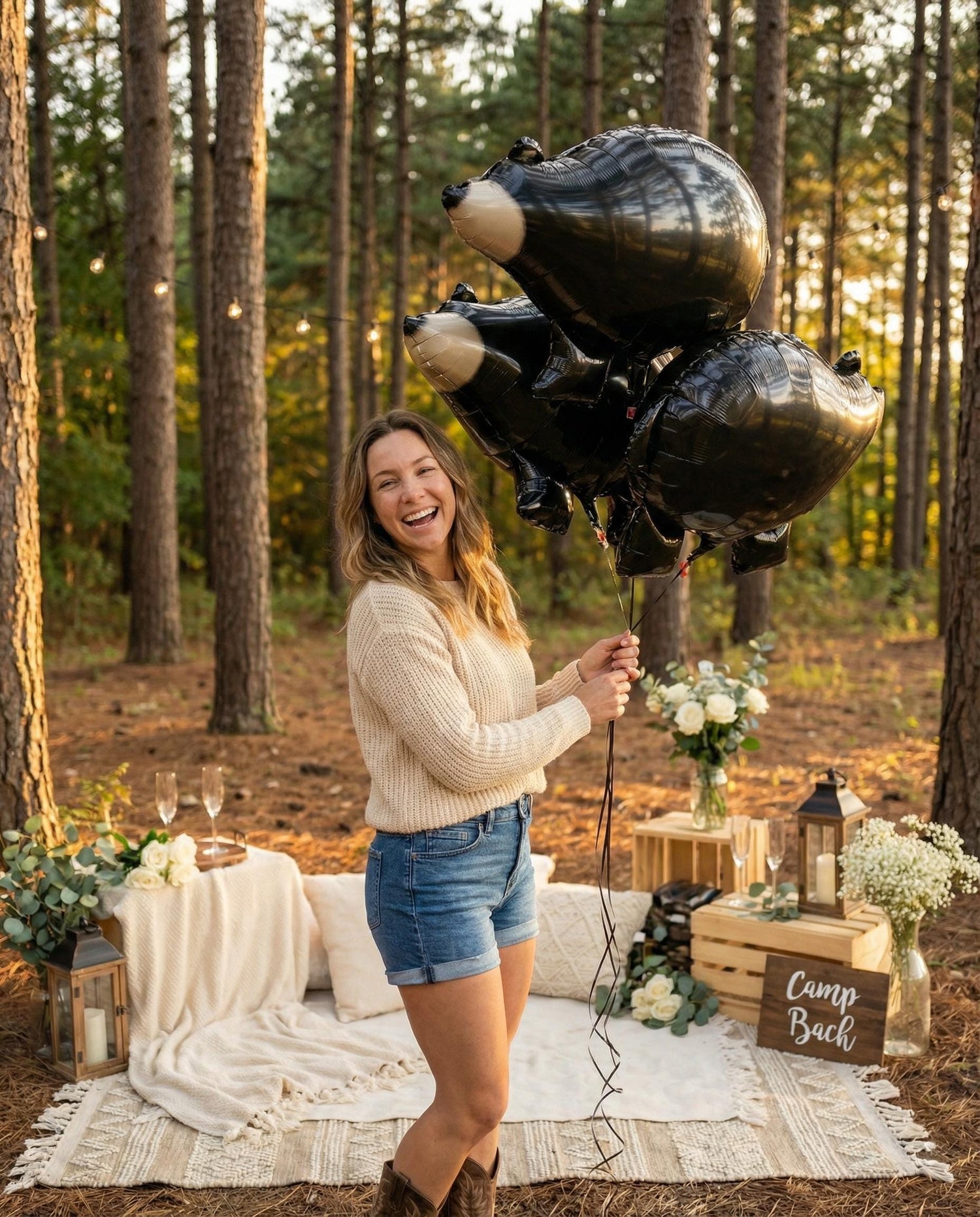 Our Black Bear Foil Balloon is the perfect statement piece for a woodland bachelorette party, camping bride weekend, or rustic cabin bridal shower. Whether you're planning a “Last Hunt” bachelorette, mountain getaway, lake house party, or cozy glamping celebration, this bear brings the bold, outdoorsy energy your theme needs.