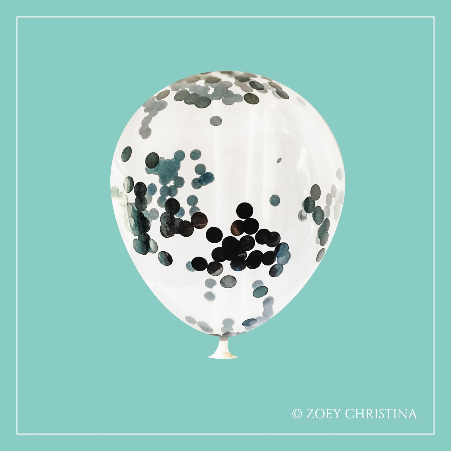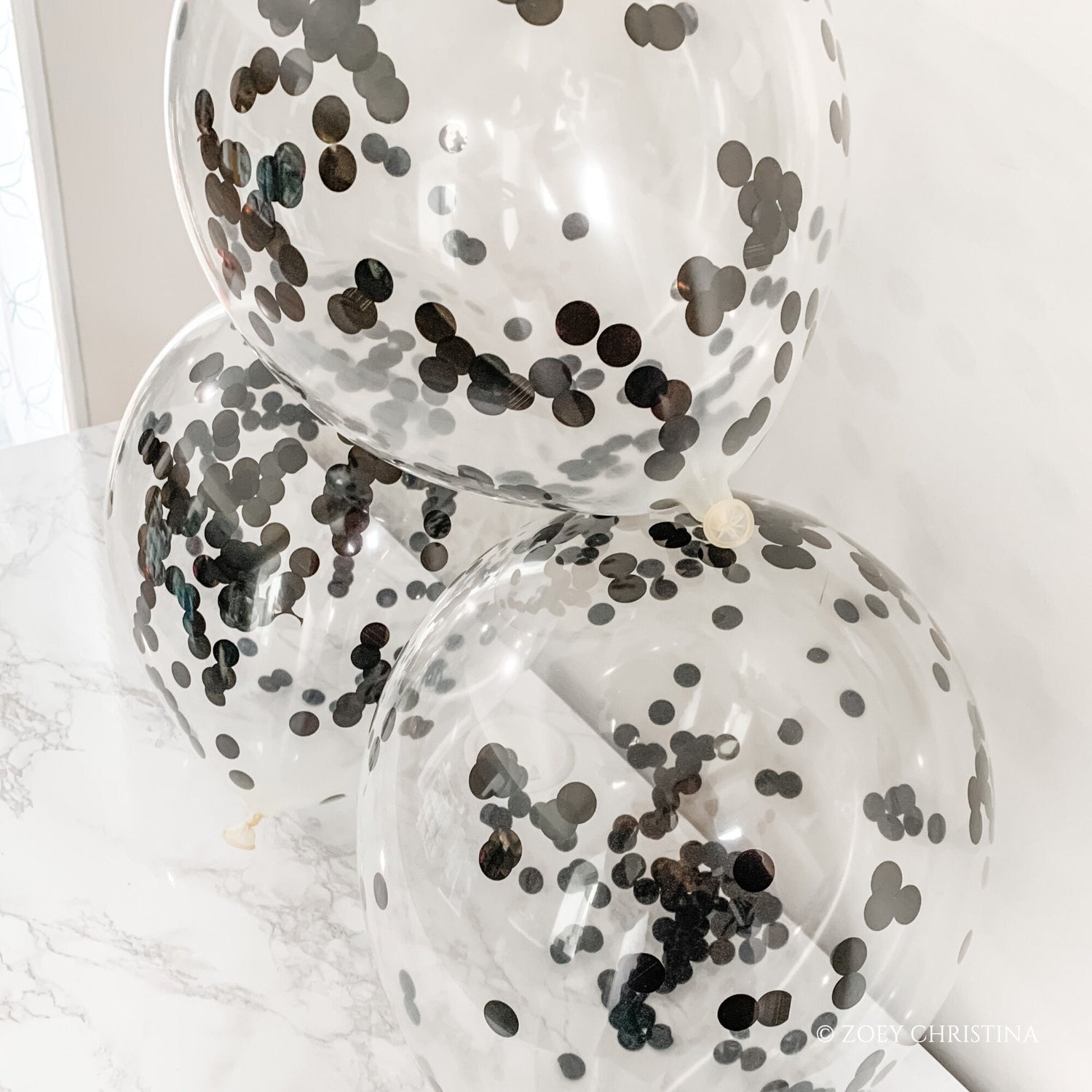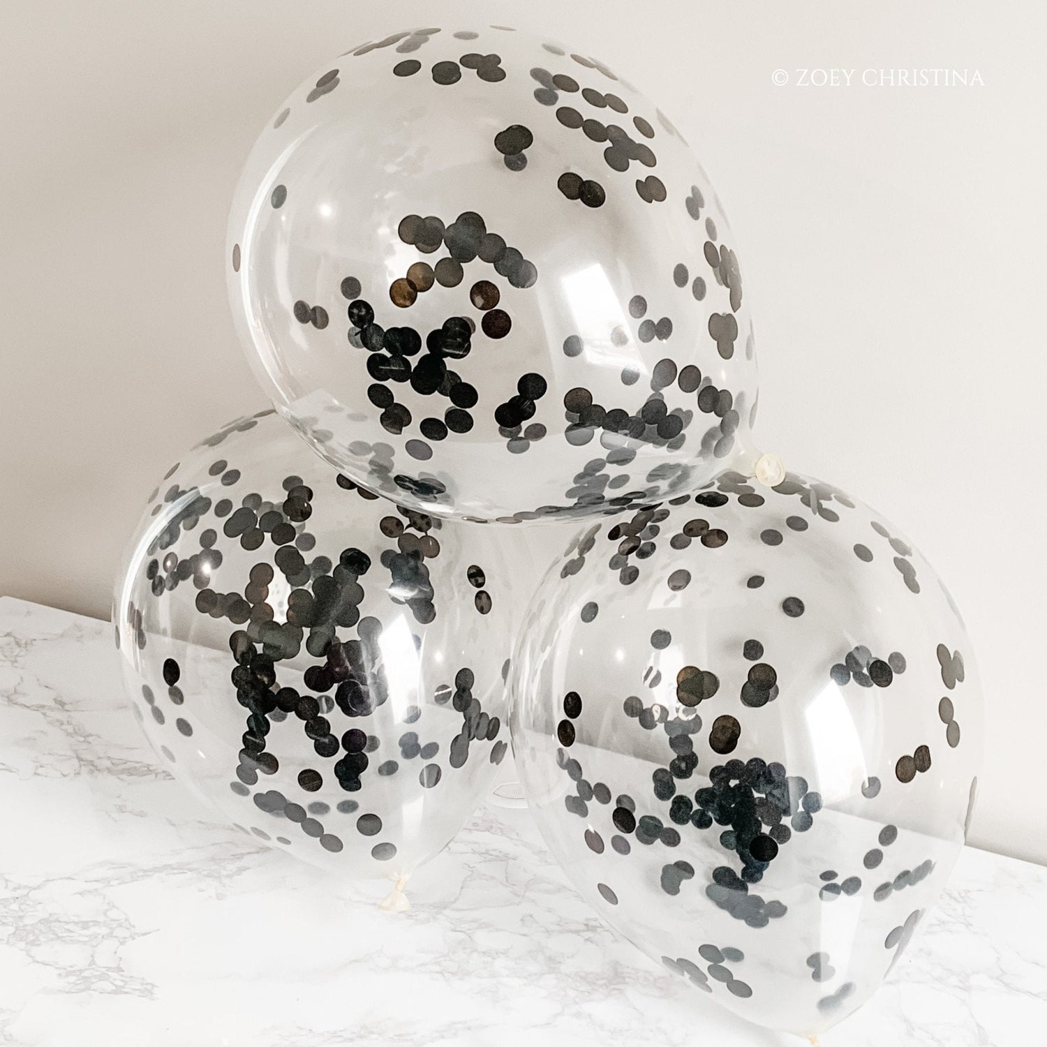 📌 Please Note: This listing is for the clear black foil confetti-filled balloons only. Additional decorations, tableware, or party supplies shown in images are sold separately.