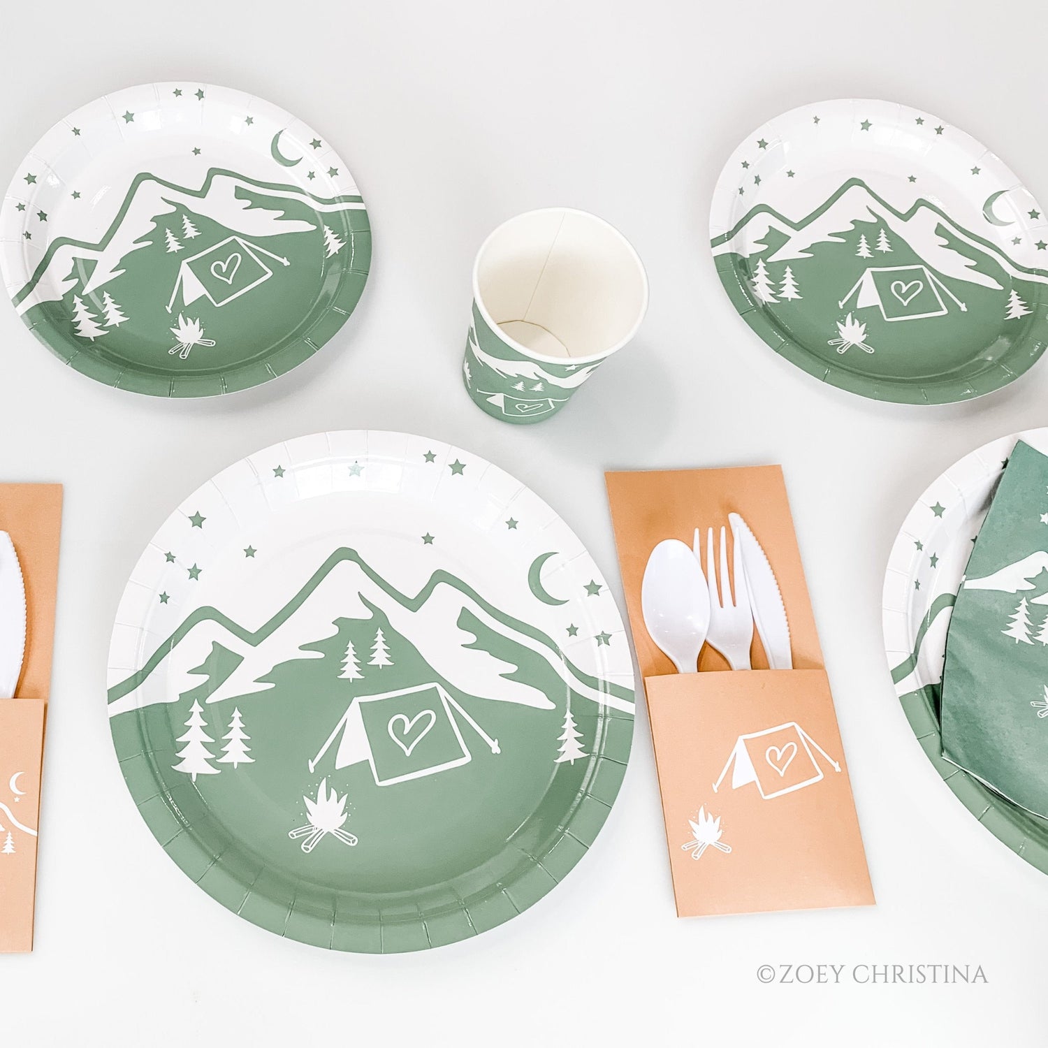Camping Bachelorette Party Decorations: Plates, Cups, Napkins, Cutlery