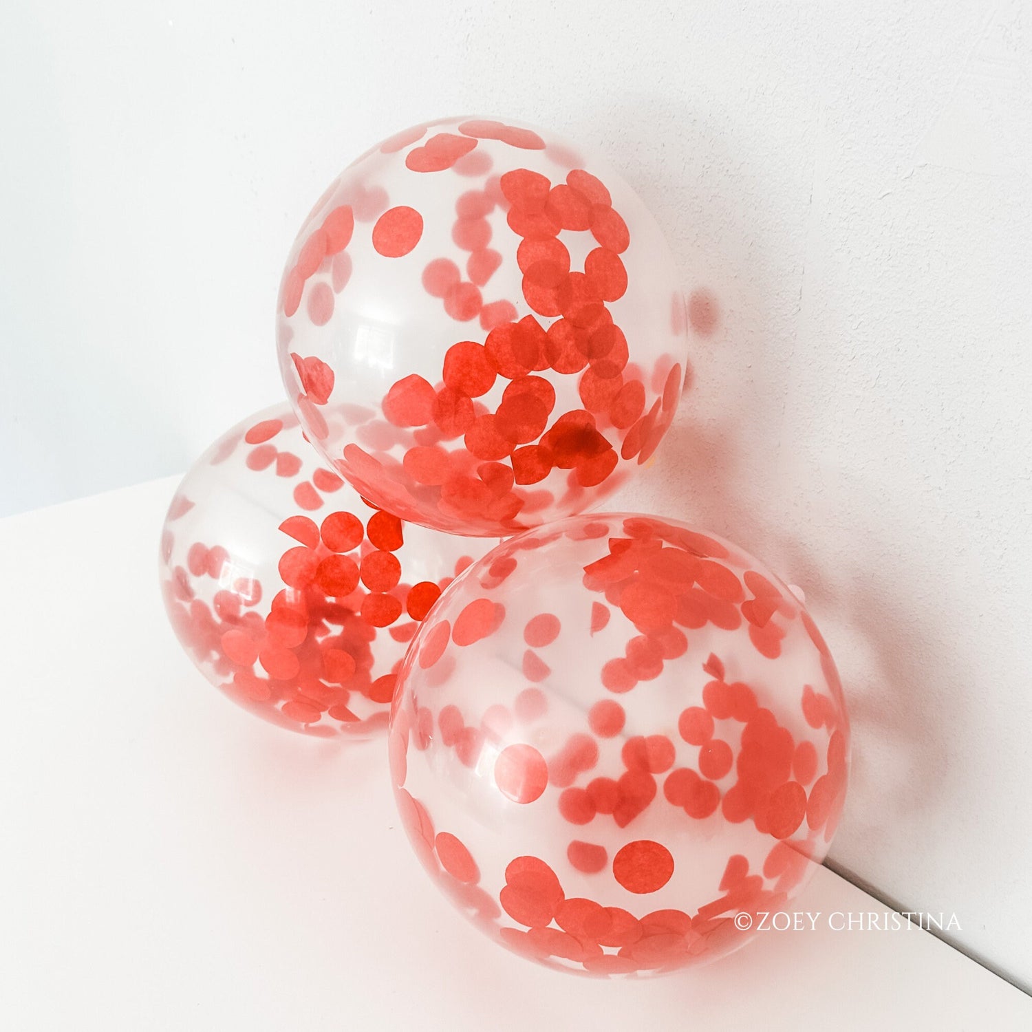 Make your event pop with these clear latex balloons filled with shimmering red foil confetti! Whether you're celebrating a nurse graduation, cherry bachelorette party, strawberry-themed birthday, or red color-themed event, these balloons are the perfect festive touch.