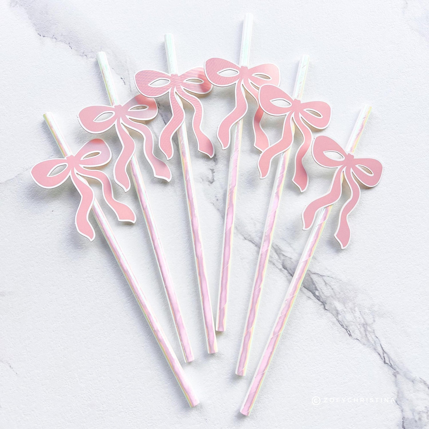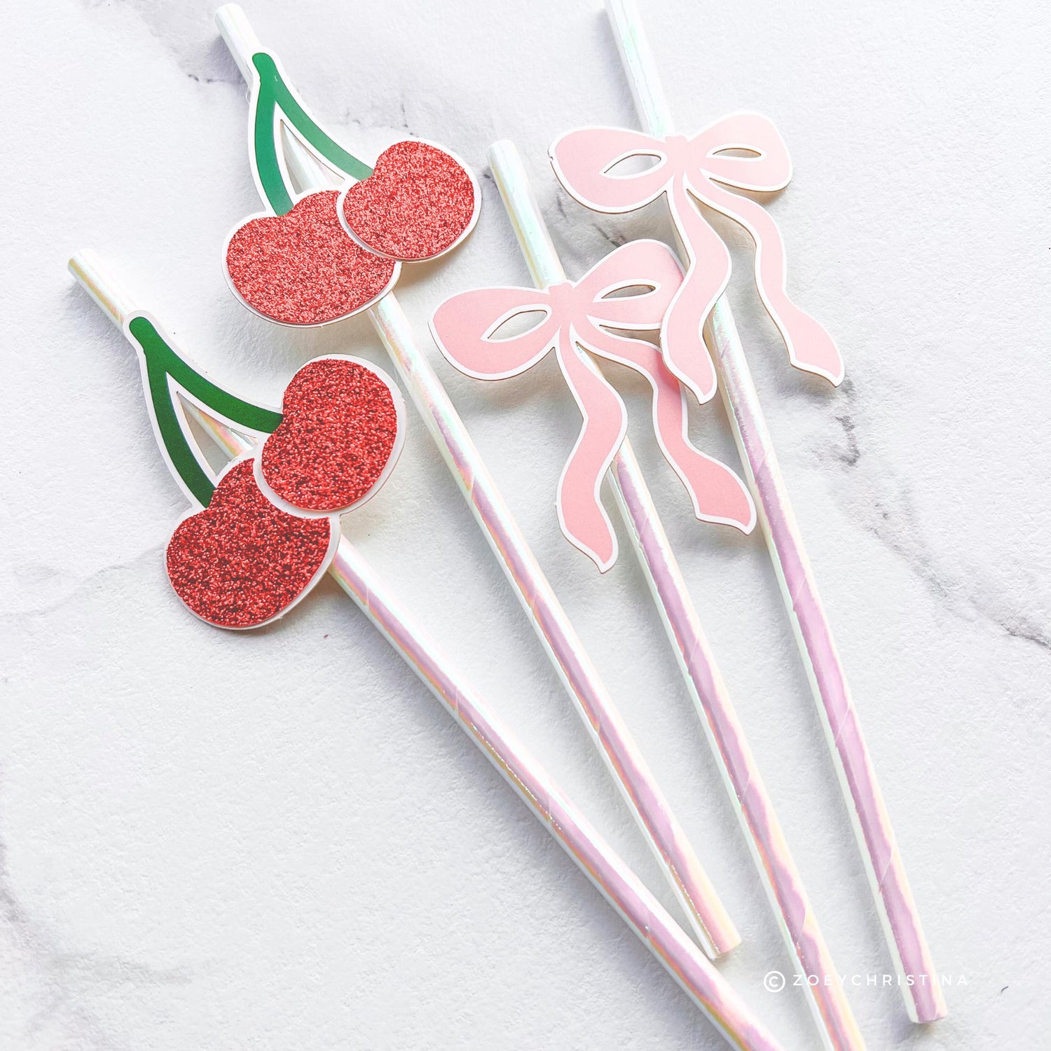 Cherry Pink Bow Paper Straws – Party Straw Drink Stirrers Cherry on top | Girly Birthday, Bachelorette and Sweet Theme Decor