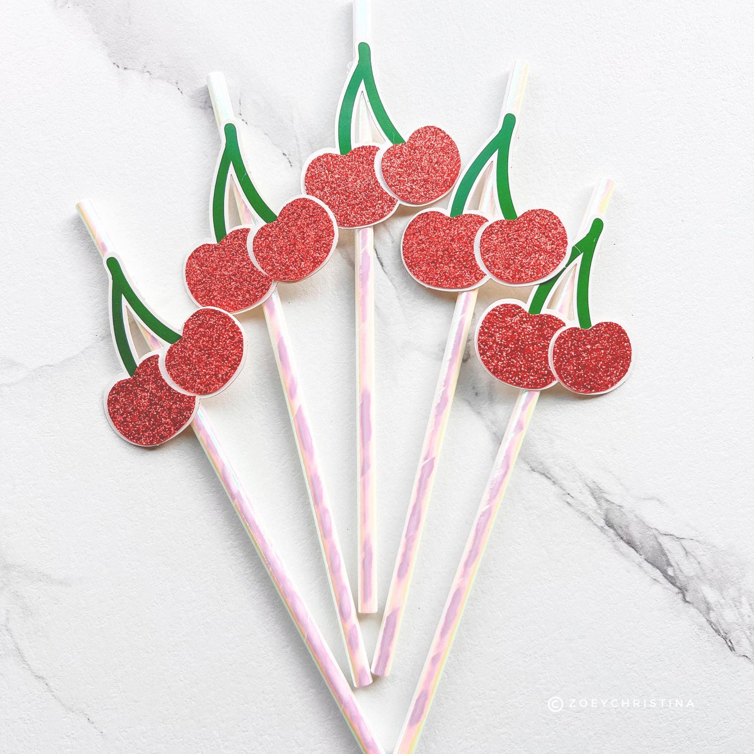 Serve up serious cuteness with our Cherry & Bow Paper Straws! Featuring iridescent white straws with a mix of glittery red cherries and soft pink bows, these are the perfect party touch for anything feminine, flirty, or fruity. From cherry-themed bachelorettes to coquette birthdays and bridal showers, these straws dress up any drink with charm.