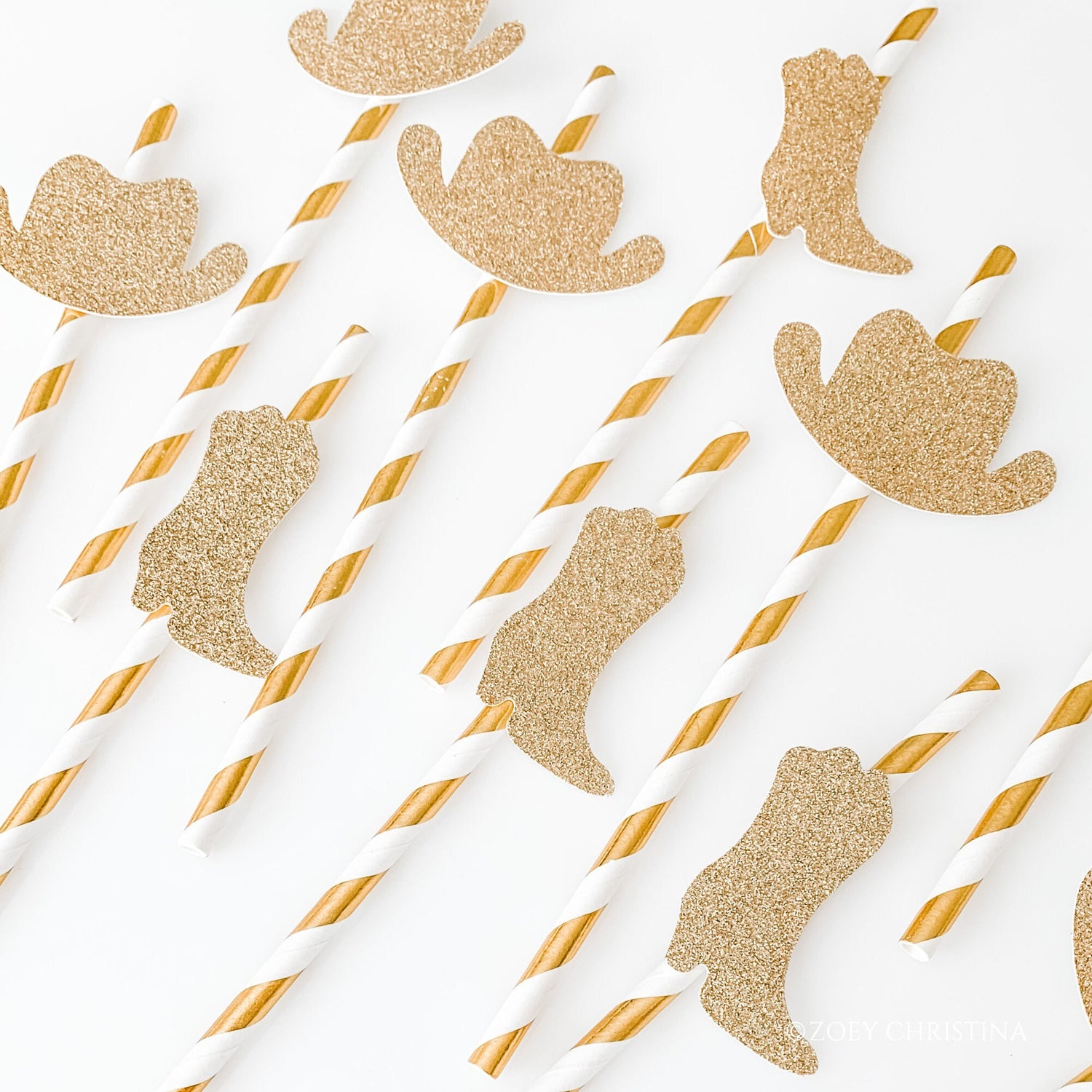 Giddy up and bring the western vibes to your event with these adorable 12-pack paper straws featuring cowboy boot & hat cutouts! Available in gold or rose gold, these straws are perfect for country-themed parties, cowgirl bachelorettes, Nashville nights, rodeos, and rustic bridal showers.