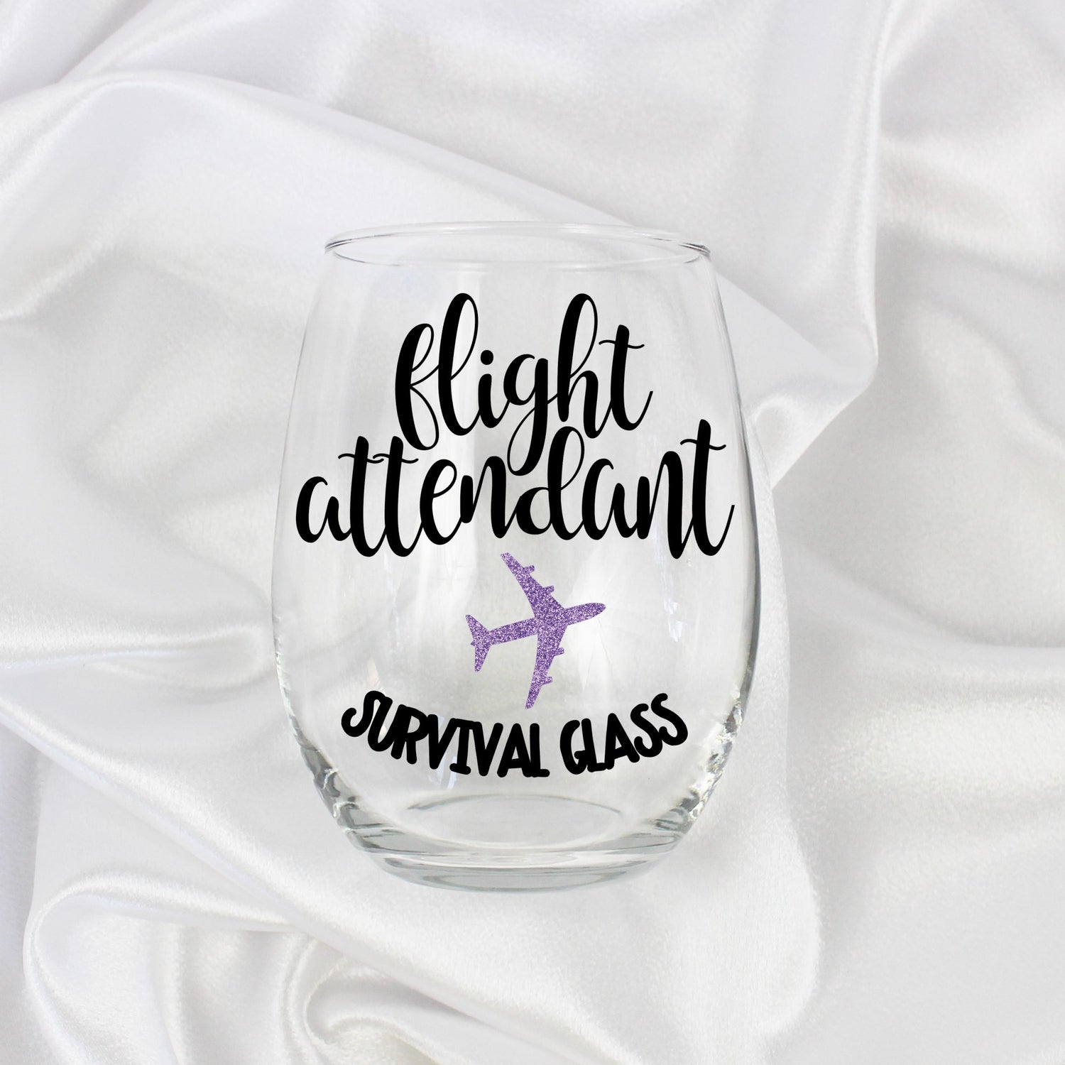 Featuring a sleek script design with a purple glitter airplane detail, this glass makes a fantastic gift for aviation professionals, graduates, or any crew member who needs a little in-flight wine therapy — on the ground, of course.