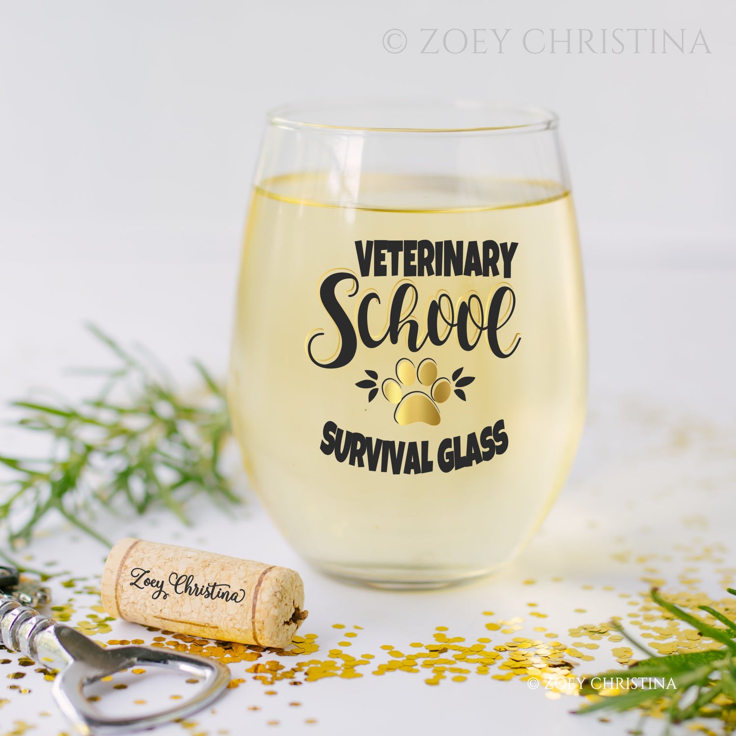Veterinary School Survival Glass – 18oz Stemless Wine Glass for Vet Students