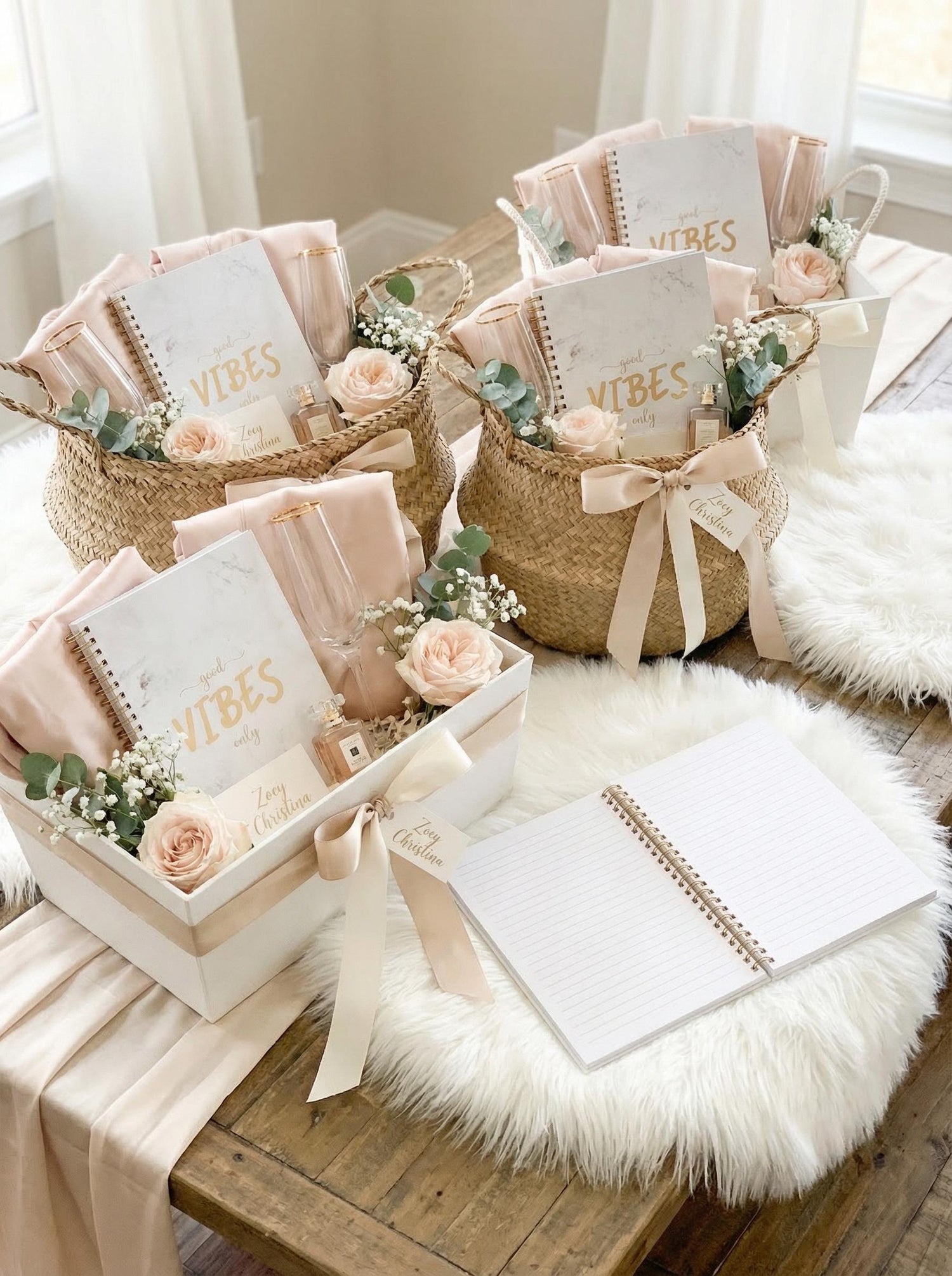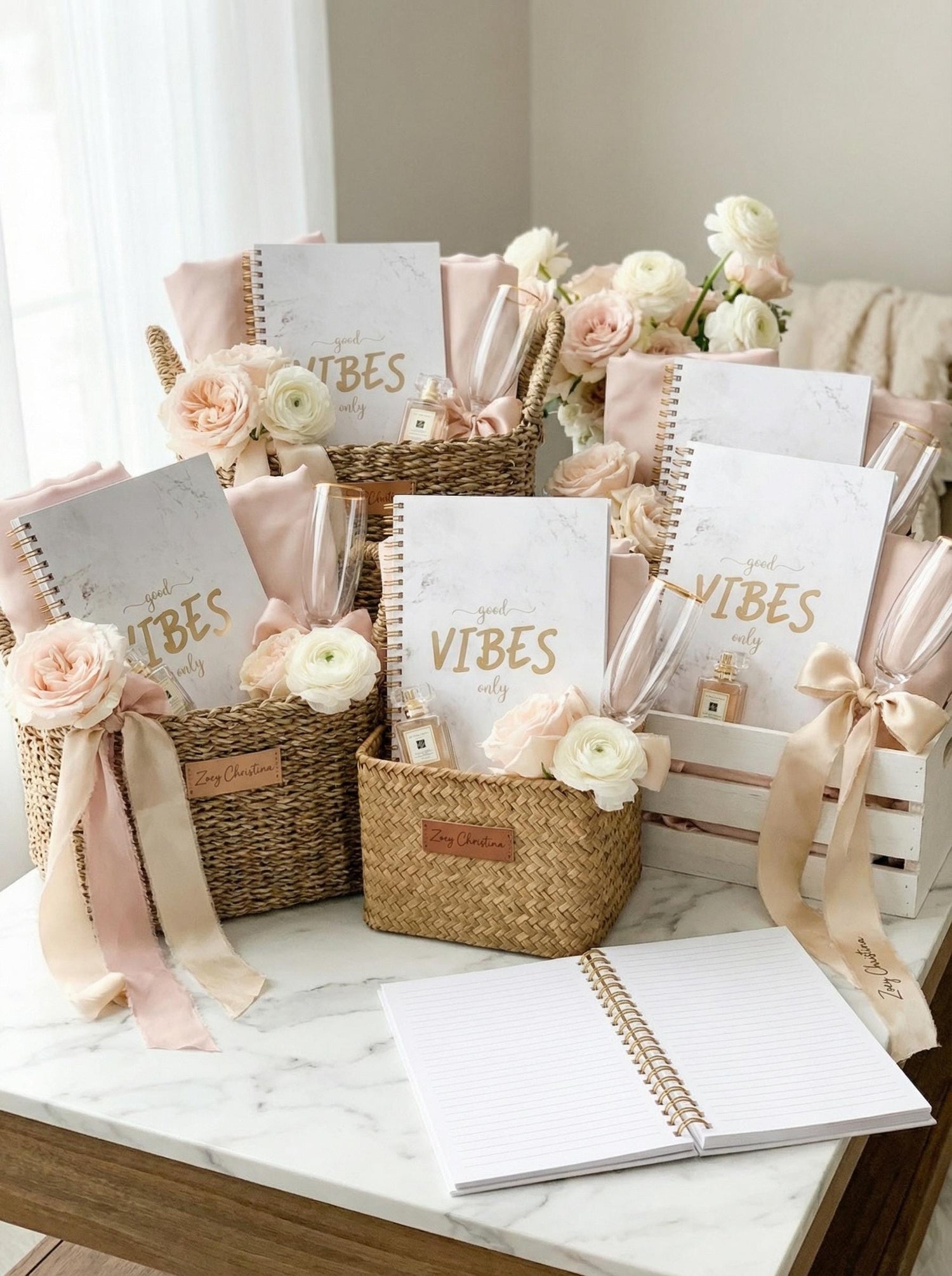 Styled beautifully on its own or paired with robes, candles, champagne flutes, or florals, this notebook makes a meaningful yet practical keepsake your recipient will actually use.