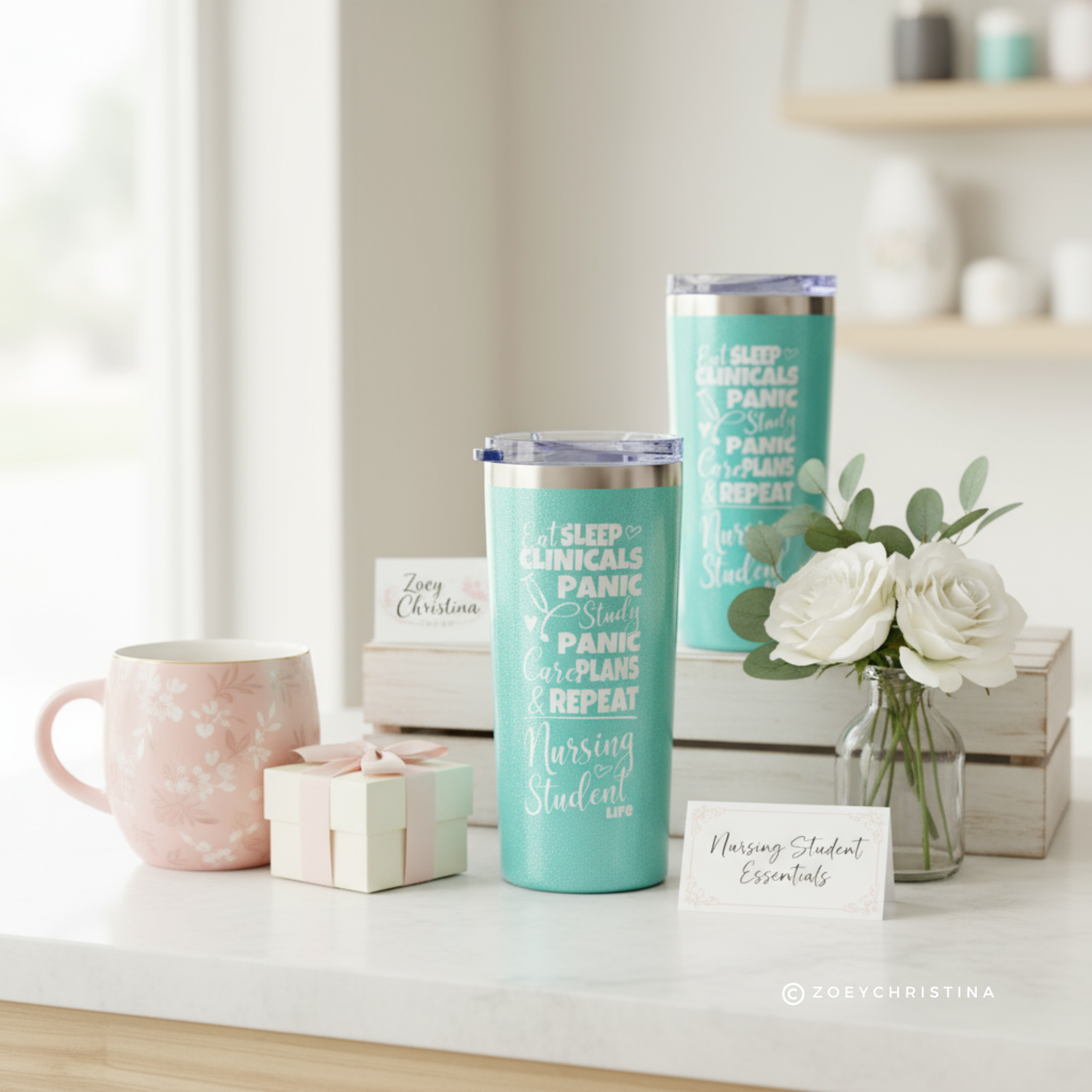 Perfect for nursing students, RN students, and future nurses who are juggling clinicals, care plans, and caffeinated chaos. It makes an amazing gift for nursing school acceptance, graduation, or just surviving the semester.