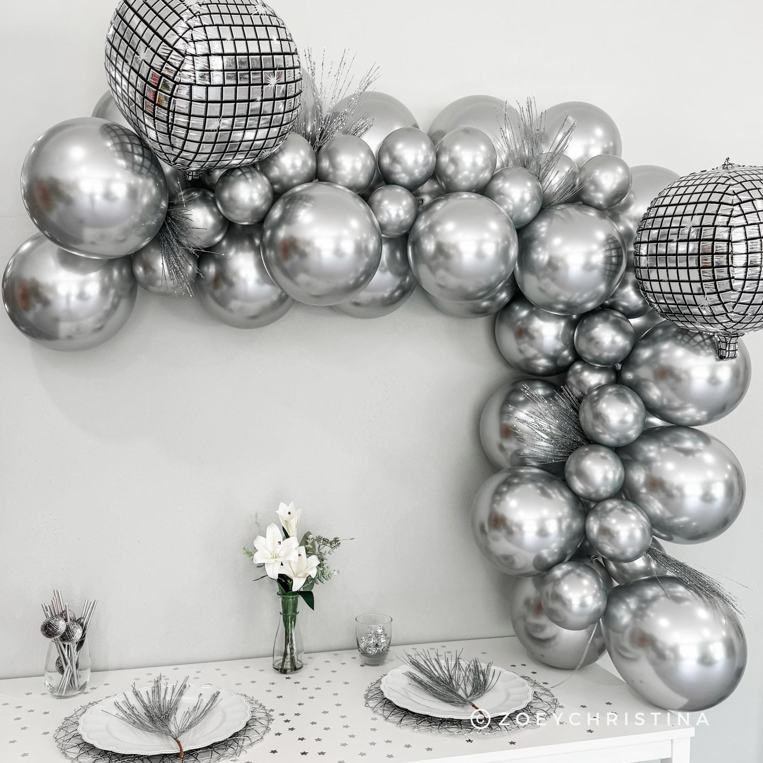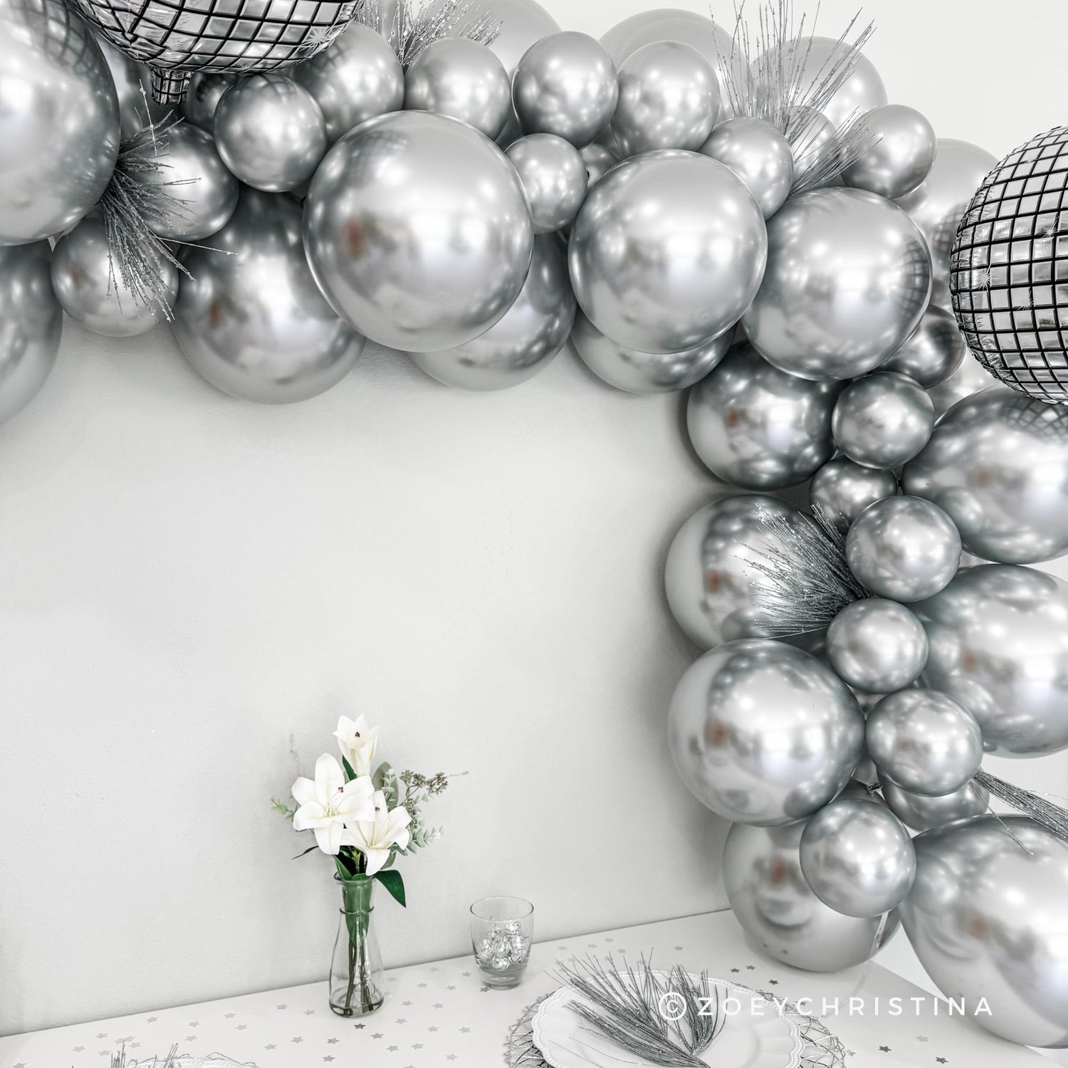 💡 Pro Tip: Pair this balloon garland with silver tinsel curtains, sparkling LED lights, and metallic tableware for a truly dazzling party setup!