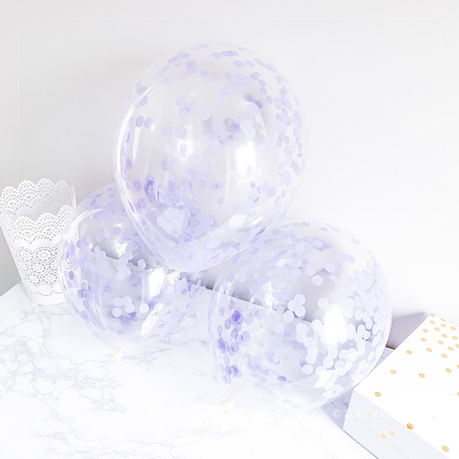 Lavender Confetti-Filled Balloons – 12” Clear Latex Balloons for Weddings & Events