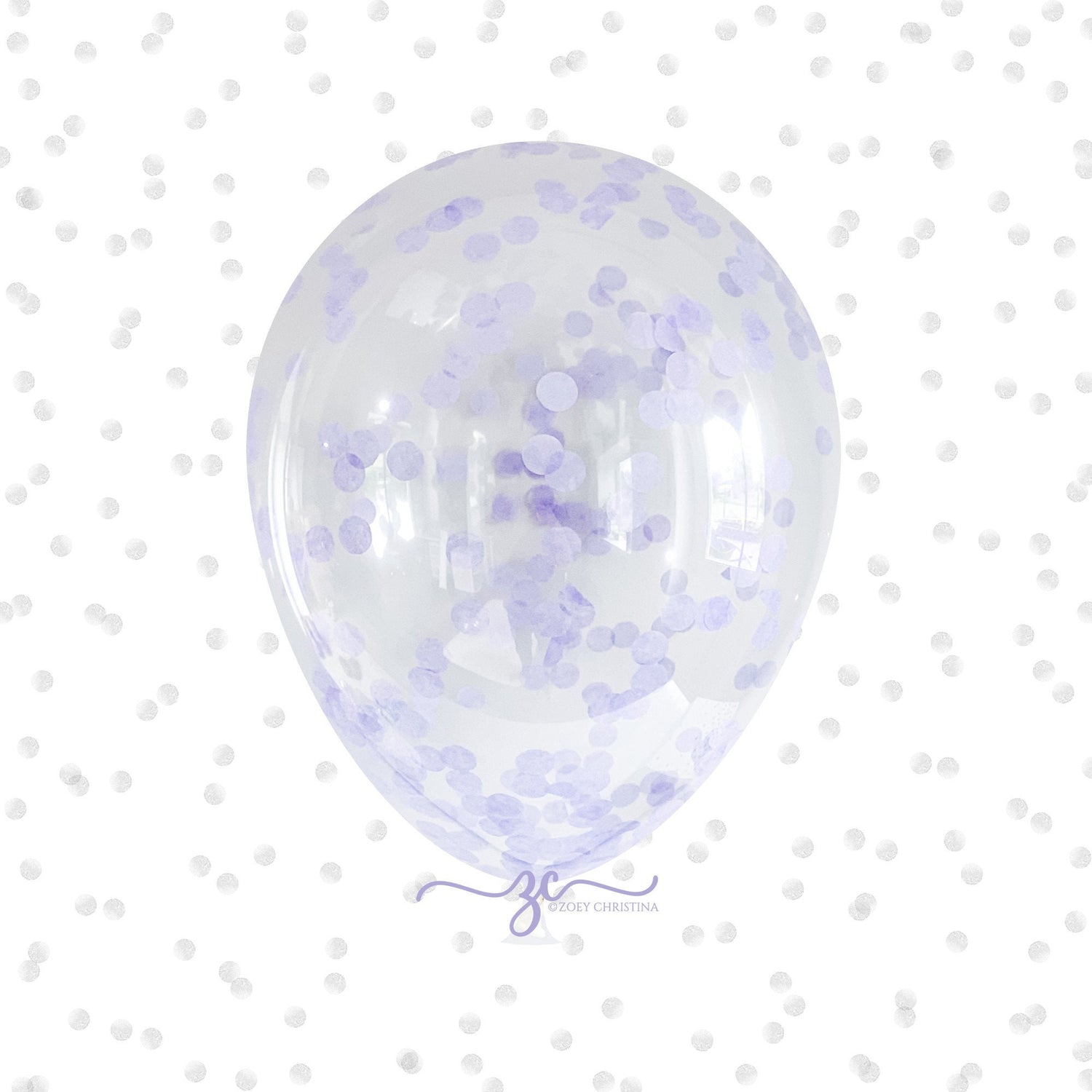 - 12” Clear Latex Balloons filled with Lavender Paper Confetti