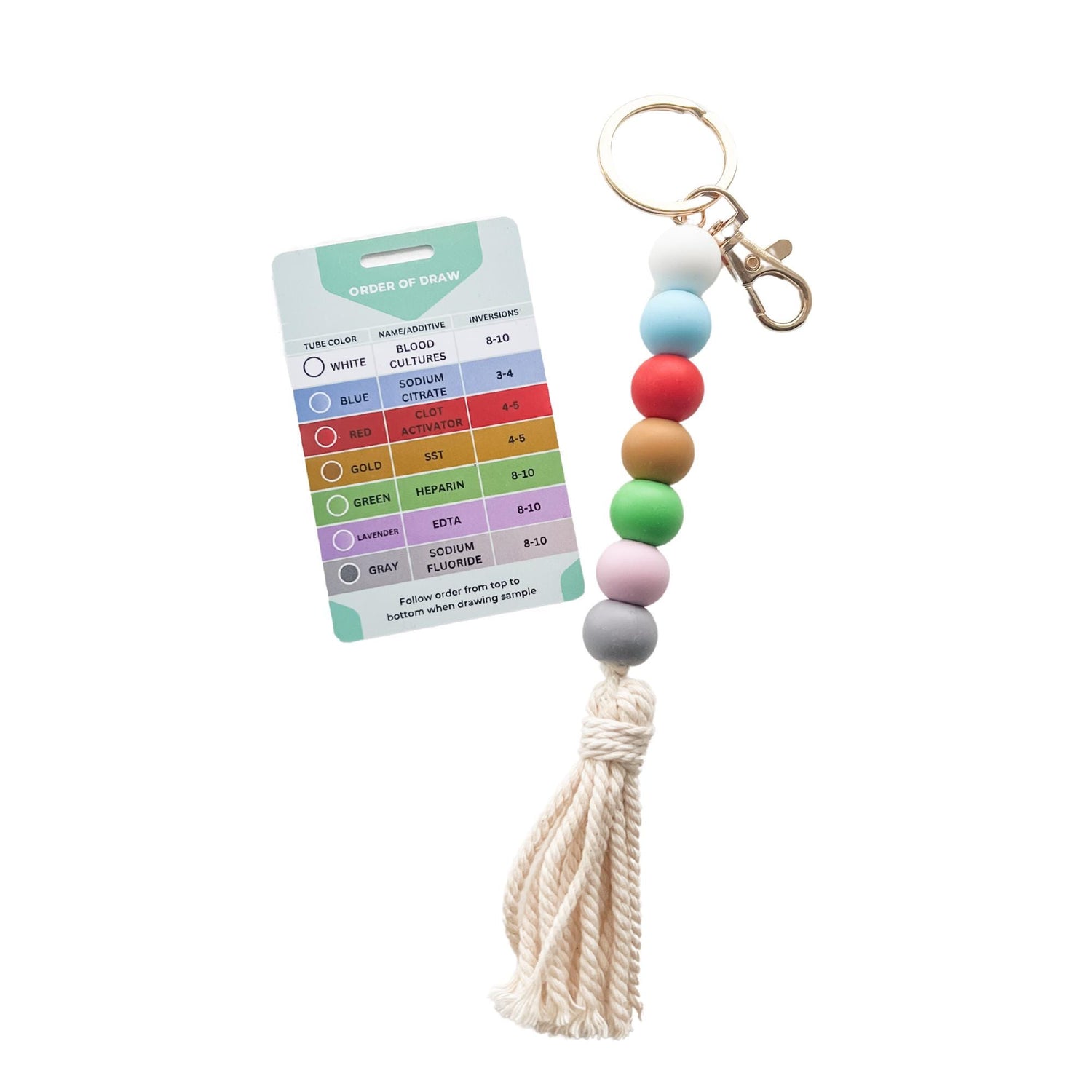 1 keychain with seven color-coded beads for the blood draw order