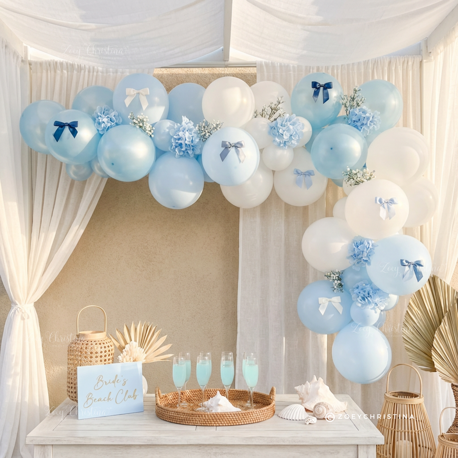 Regency-Inspired Blue Balloon Garland Kit – Pastel Blue Party Decor for High Society Themes, Bridal Showers & Garden Parties