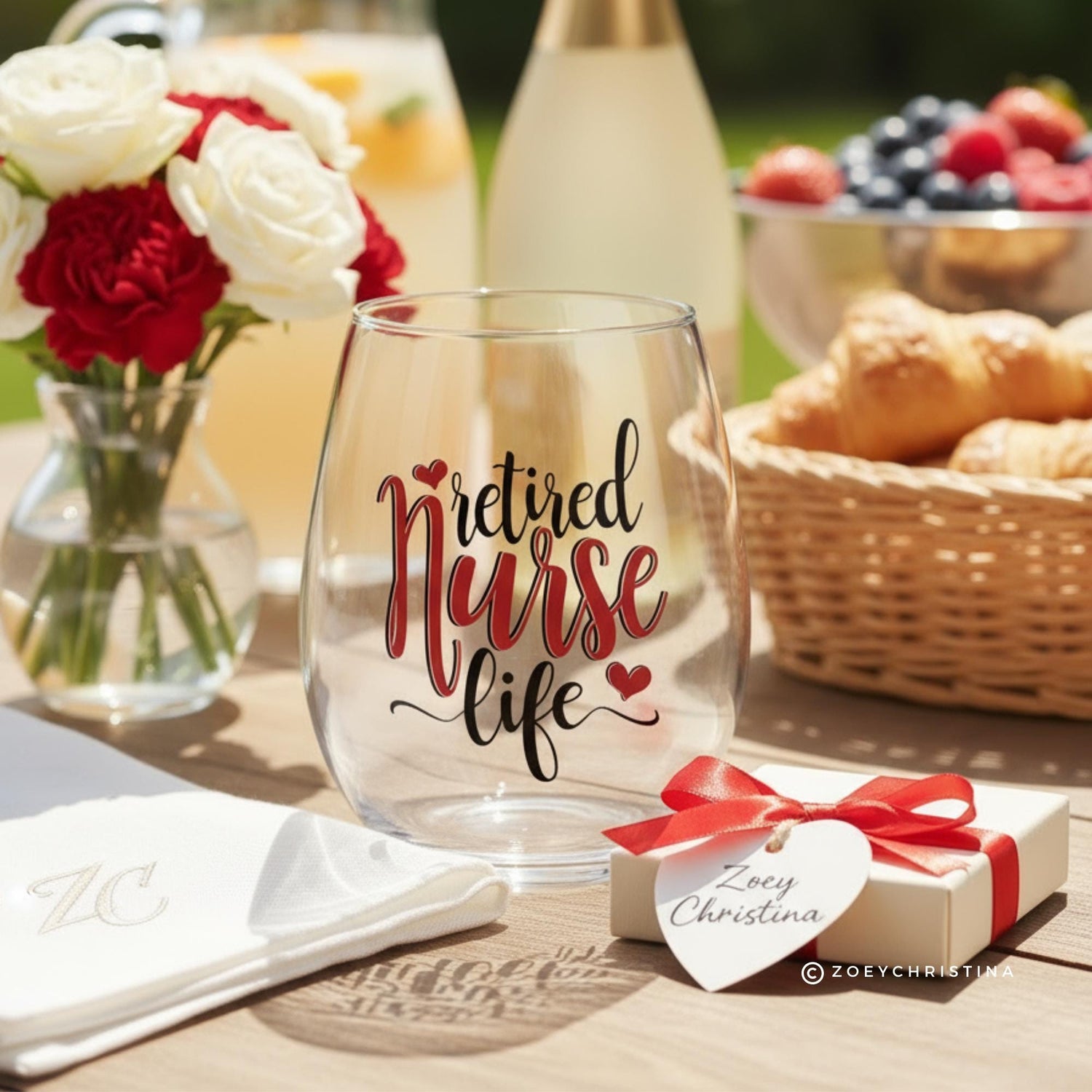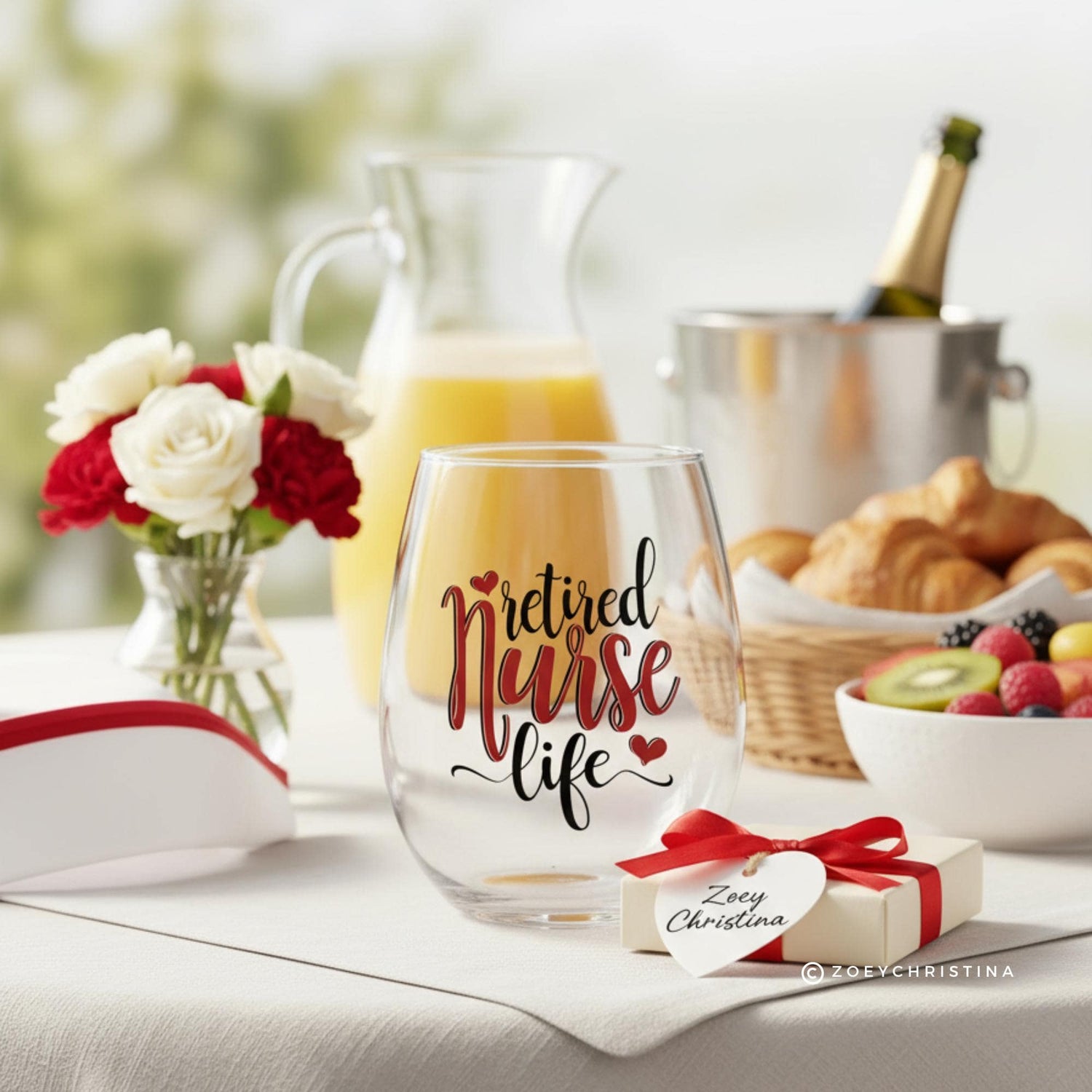 This glass features a bold red and black design with a heartwarming message—perfect for sipping wine, iced coffee, or even sparkling water. A thoughtful gift for retired RNs, LPNs, or nursing school graduates entering retirement, this glass is equal parts meaningful and functional.